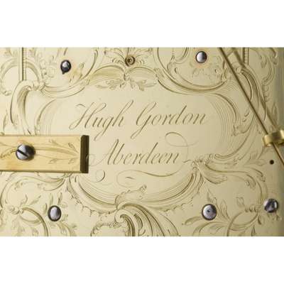Note: Hugh Gordon was working in Aberdeen from 1748-90, having previously worked in Edinburgh and London. He seems to have been a very proficient maker although little of his work has apparently survived.