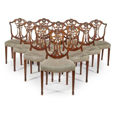 SET OF TWELVE GEORGE III STYLE MAHOGANY DINING CHAIRS, BY MORISON & CO., EDINBURGH