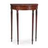 the crossbanded top above a boxwood lined frieze, raised on reeded tapered legs