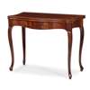 in the French style, the crossbanded fold-over top opening to a green baize playing surface, raised on cabriole legs
