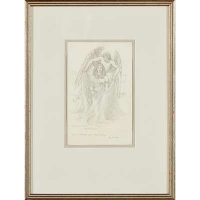 Signed, dated 'Jan. 11. 1907', and inscribed 'Ancient Egypt Revealed To C.T. Currelly from Henry Holiday' in pencil to margin, pencil on paper