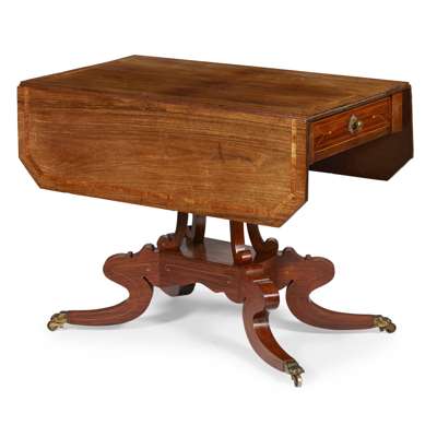 REGENCY ROSEWOOD AND SATINWOOD PEDESTAL PEMBROKE TABLE Y