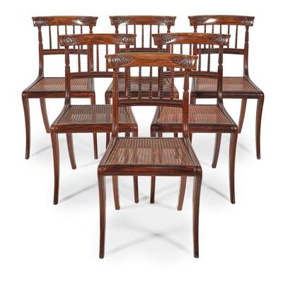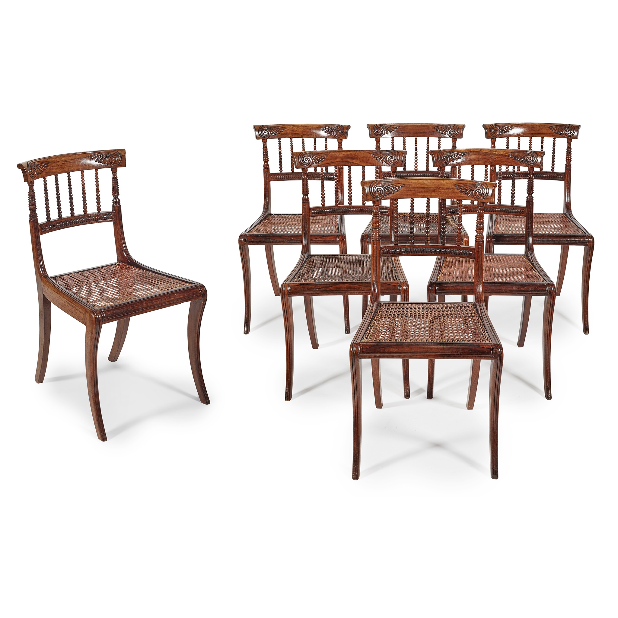 SET OF SEVEN REGENCY ROSEWOOD DINING CHAIRS Y