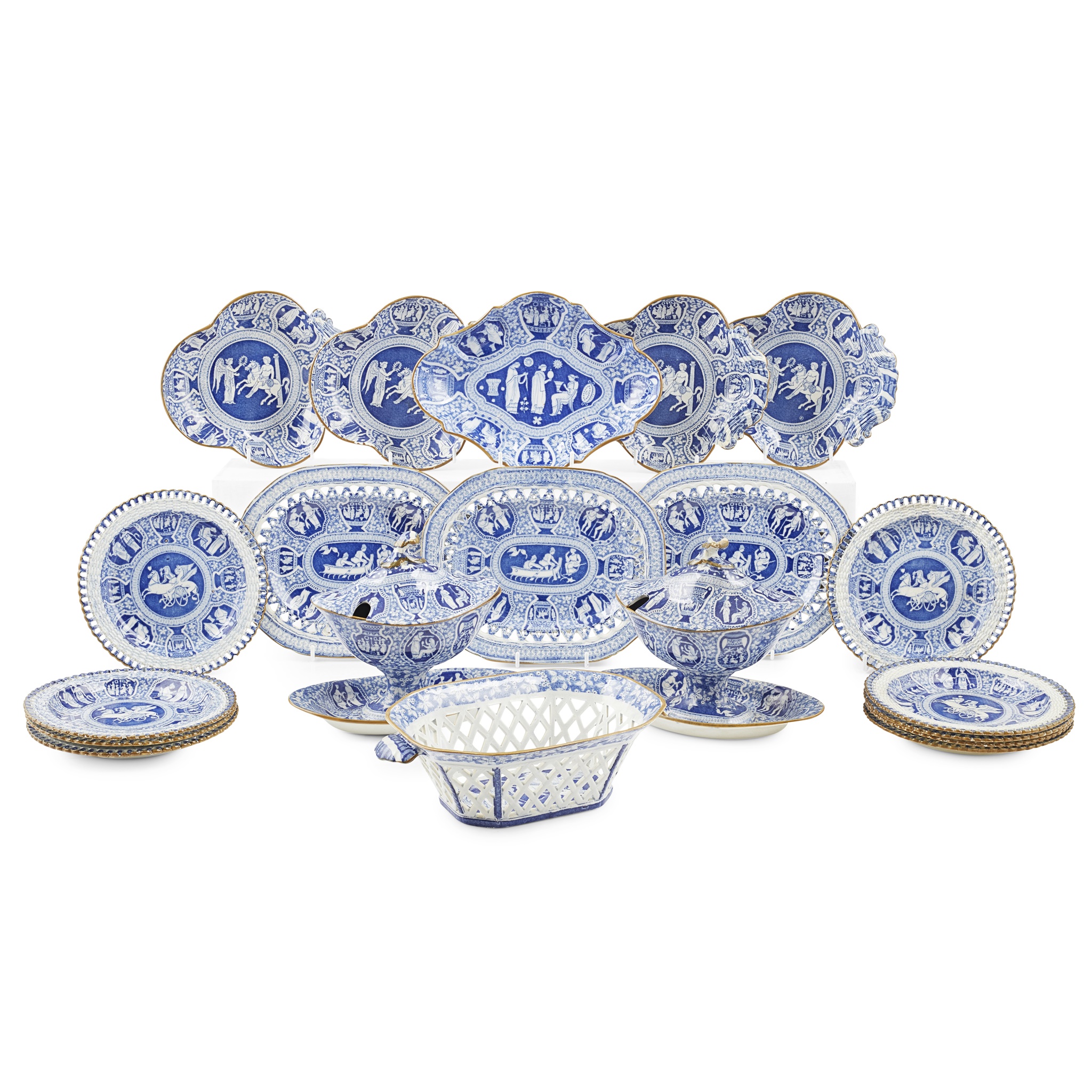 ASSEMBLED ENGLISH PART 'GREEK' PATTERN PEARLWARE DESSERT SERVICE