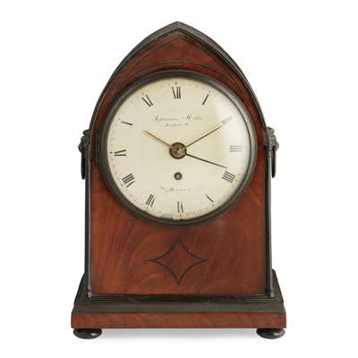 REGENCY MAHOGANY AND EBONY LANCET MANTEL CLOCK, SEPTIMUS MILES, LONDON