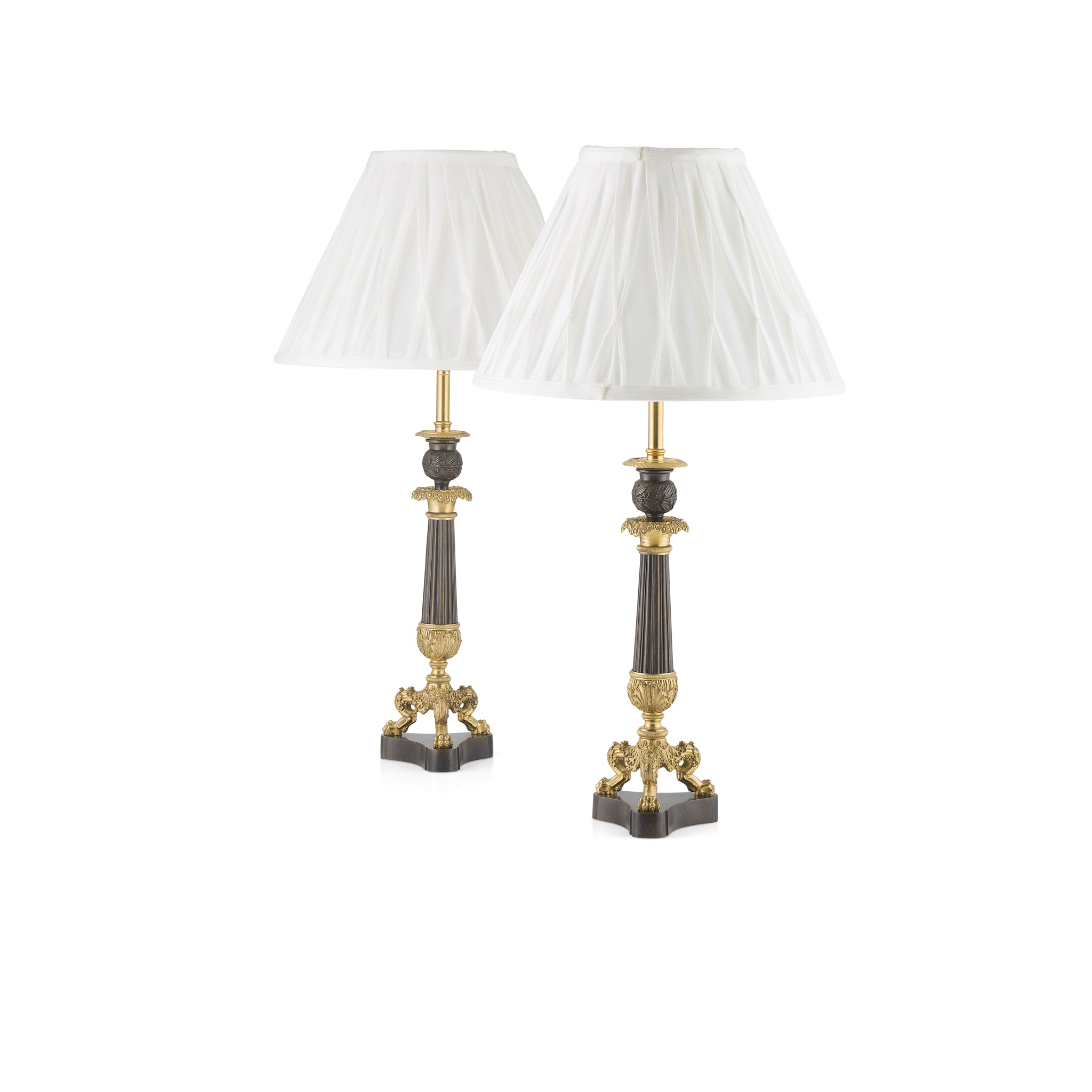 PAIR OF REGENCY GILT AND PATINATED BRONZE TABLE LAMPS