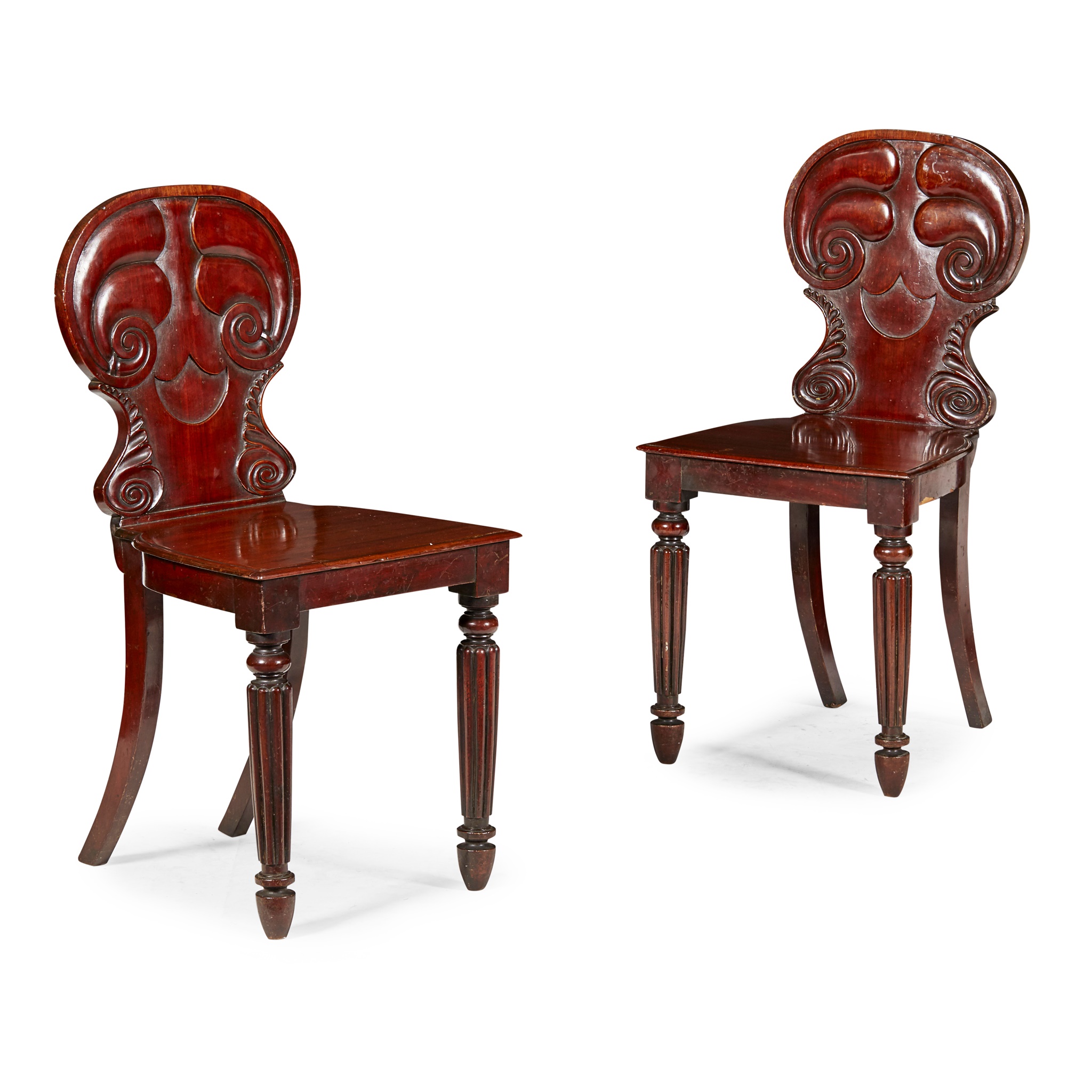 PAIR OF REGENCY MAHOGANY HALL CHAIRS, BY GILLOWS
