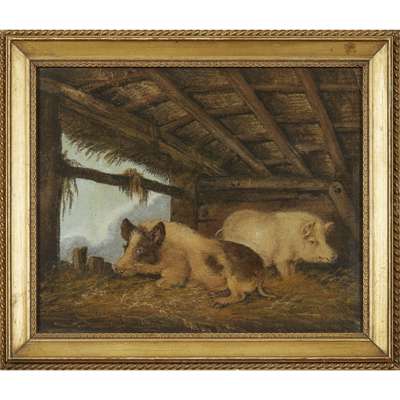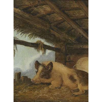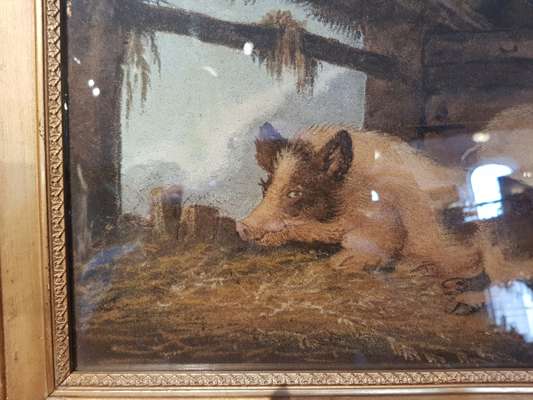 SAND PICTURE OF TWO PIGS IN A STY
