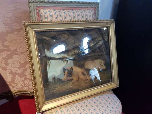 Note: Benjamin Zobel was a British-German painter, who developed the technique of marmotinto, otherwise known as sand painting. It was based on the Japanese craft of bonseki (tray painting), and was at the height of its popularity in England at the end of the 18th century. In 1783, George III hosted a dinner party where a display of unfixed coloured sands, sugar and marble dust was arranged on the table below a glass surface, by Zobel. So enchanted was the king that Zobel found ways of incorporating sand into his other work, which continued to prove popular with members of the Royal household including the Duke of York. Examples of Zobel's work are included in the Memmingen city museum archives in Germany, the Victoria and Albert Museum, London and Dundurn Castle, Hamilton, Ontario.