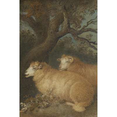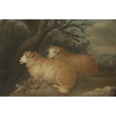 SAND PICTURE OF A RAM AND EWE UNDER A TREE