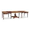 comprising a pair of D-ends with a reeded edge and drop-leaf extensions opening on gatelegs, and an associated centre section raised on a lobed baluster column and quadriform base on bun feet with brass castors