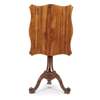 the shaped rectangular tilt top on tripartite scroll supports above a shell carved platform and leaf carved scroll legs ending in scrolled toes