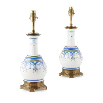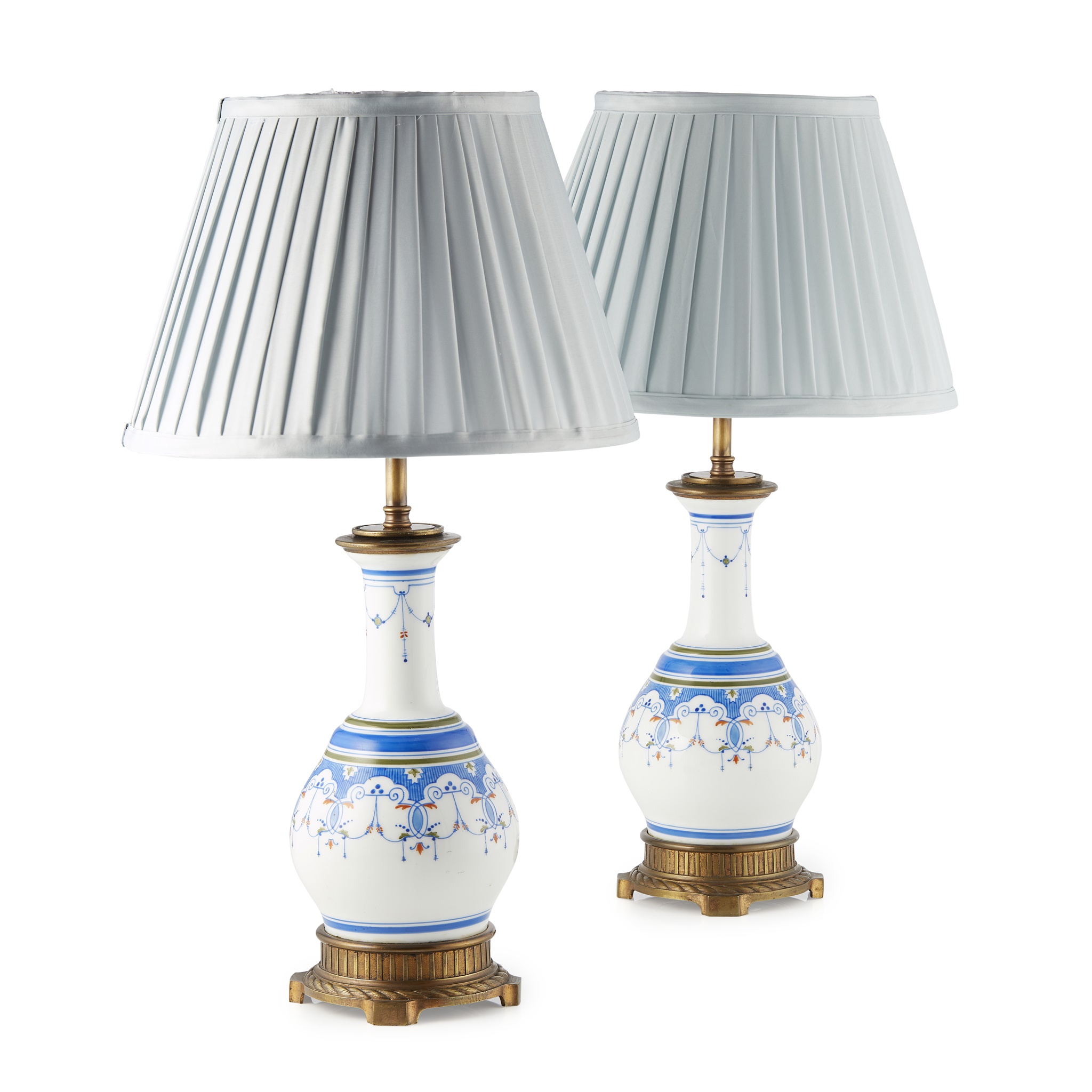 PAIR OF GILT BRONZE MOUNTED PORCELAIN TABLE LAMPS