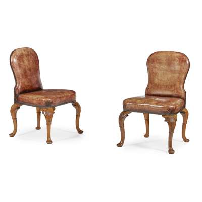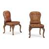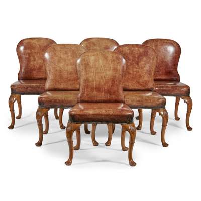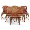 SET OF EIGHT GEORGE II STYLE WALNUT AND LEATHER DINING CHAIRS