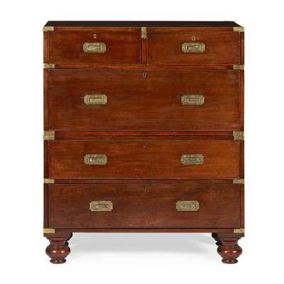MAHOGANY AND BRASS CAMPAIGN CHEST OF DRAWERS