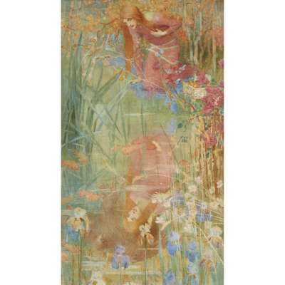 In stylistic terms, with its references to Edward Burne-Jones and John William Waterhouse, the work is decidedly of the Celtic Revival period, and is likely to have been painted some years before the Barcelona exhibition at which it was awarded a silver medal. It chimes with that of some of Codrington’s Royal Academy Schools contemporaries – Edwardian Pre-Raphaelites such as Frank Cadogan Cowper, Charles Sims and John and Mary Young Hunter who also appealed to myths and fairy tales from northern Europe and Scandinavia.