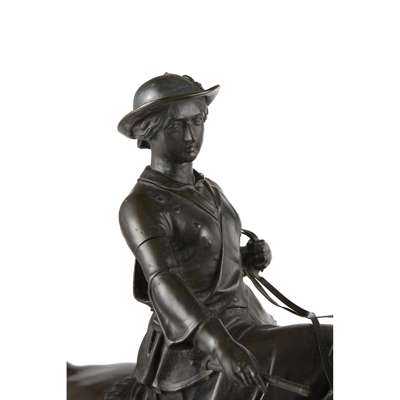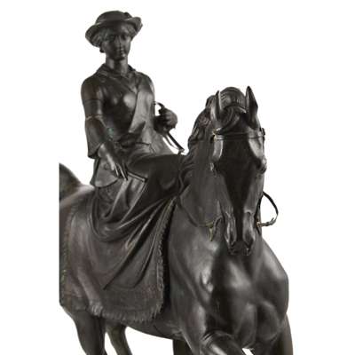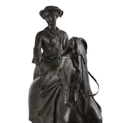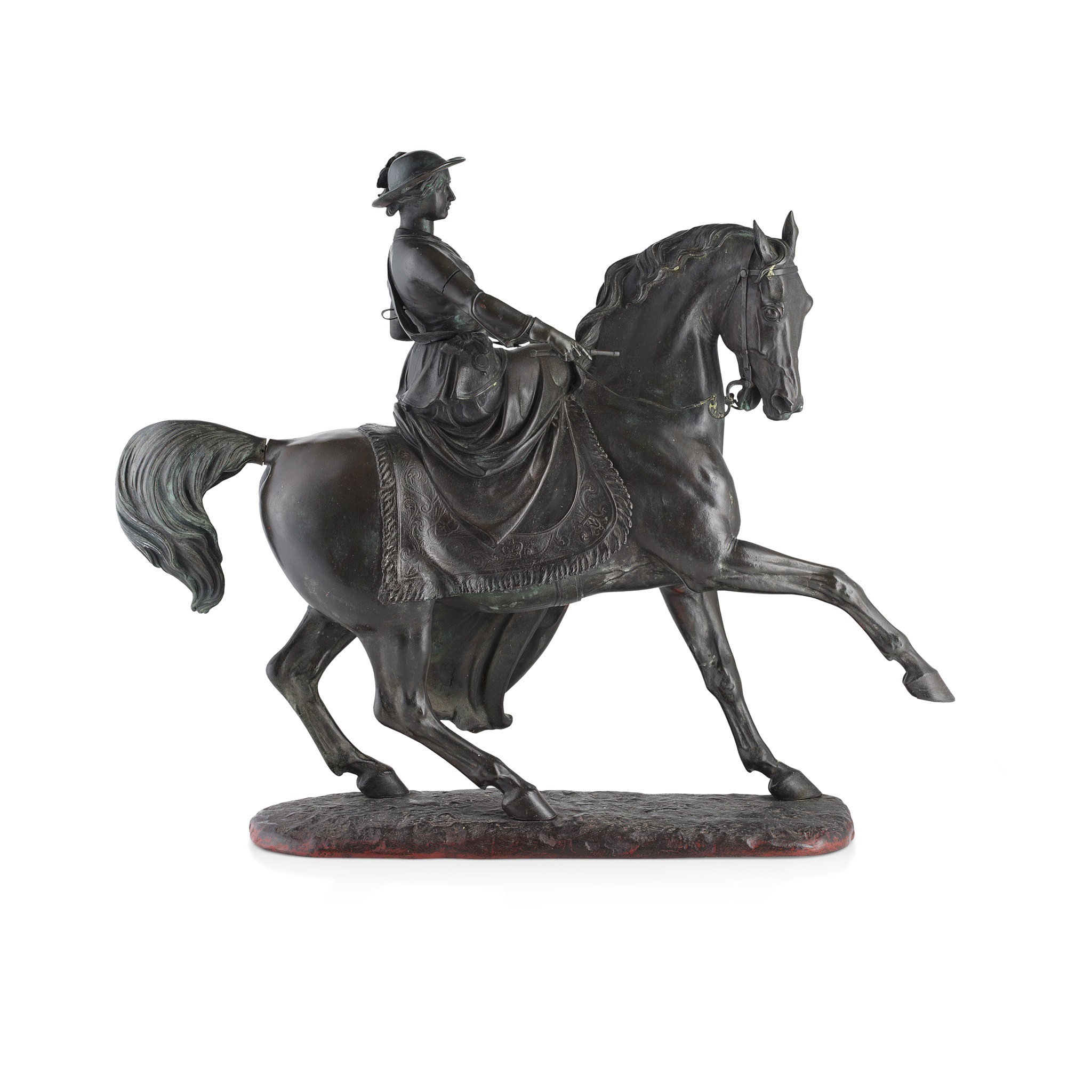 The Art Union of London commissioned Thornycroft to complete fifty statues in bronze, and awarded them as prizes between 1854 and 1859, of which the current lot is one. As part of the commission, he repositioned to horse’s legs, changing them from the plaster version shown at the Great Exhibition. Other examples are in the Royal Collection and the collection of the V&A.