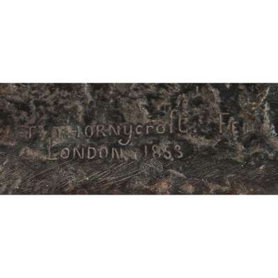 Thomas Thornycroft, the son of a farmer, spent four years as an apprentice to the Sculptor John Francis, marrying his daughter Mary, also a sculptor, in 1840. He exhibited at the Royal Academy from 1839 and 1874 and made numerous large commissions, including Boadicea and Her Daughters on the Western end of Westminster Bridge, and a marble group Commerce for the Albert Memorial in Kensington Gallery.
