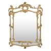 the shaped rectangular mirror plate enclosed by margin plates in a frame carved with rocaille, C scrolls, flowerheads and auricular motifs