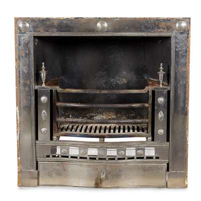 GEORGE III STRIPPED PINE AND MARBLE FIRE SURROUND AND POLISHED STEEL REGISTER GRATE