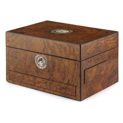 VICTORIAN WALNUT AND MOTHER-OF-PEARL DRESSING BOX