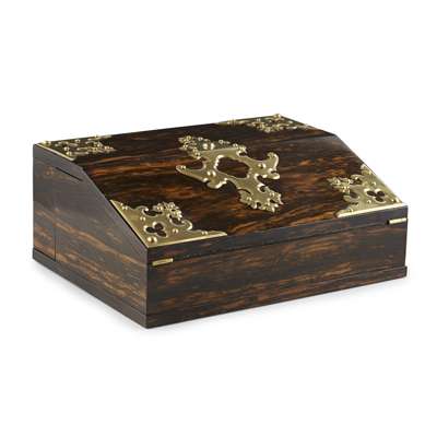 VICTORIAN COROMANDEL AND BRASS WRITING SLOPE, G. BETJEMANN & SONS, LONDON