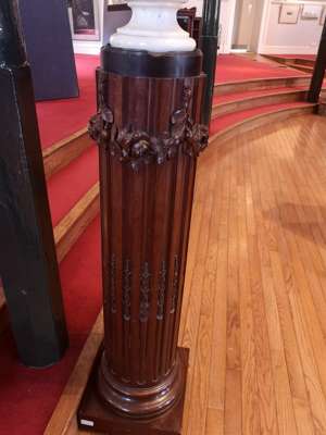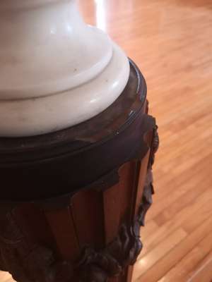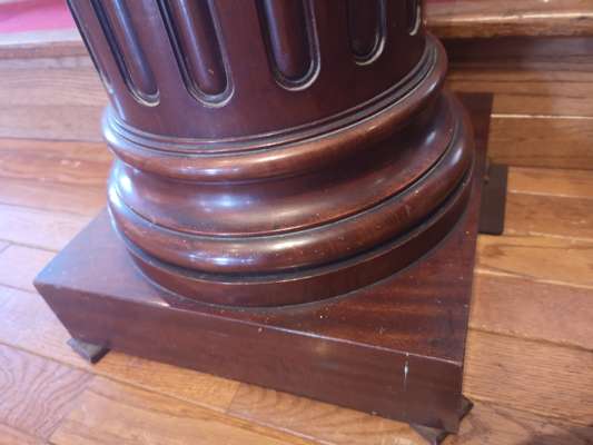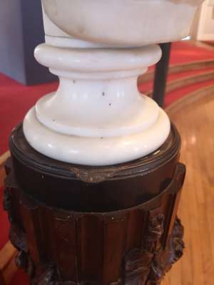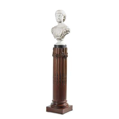 bears inscription verso D.W. STEVENSON A.R.S.A. SC./ EDIN. 1879; raised on an associated mahogany column plinth, with carved floral swag decoration, the fluted sides with husk-carved stop fluting