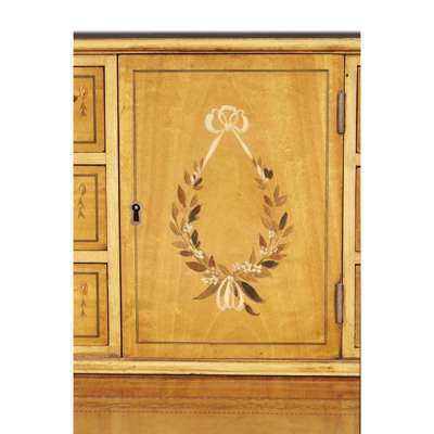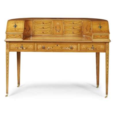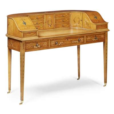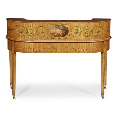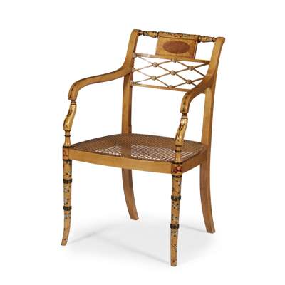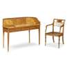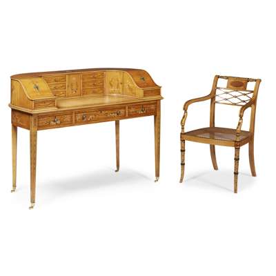 GOOD VICTORIAN PAINTED SATINWOOD CARLTON HOUSE DESK AND ARMCHAIR