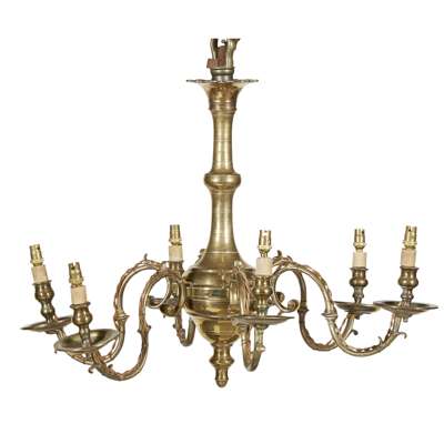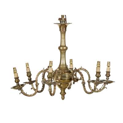 GEORGIAN STYLE BRASS SIX BRANCH CHANDELIER