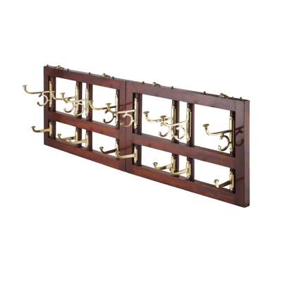 the hinged frame consisting of two parts with hanging loops, fitted with eight rotating columns and brass hooks, above shorter columns with smaller hooks, stamped 2/ 28746