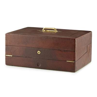 VICTORIAN LEATHER WRITING SLOPE, BY RODMAN & CO. BELFAST