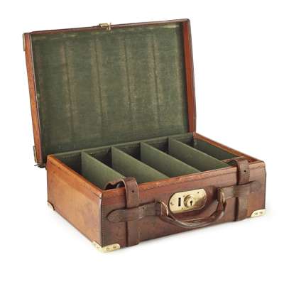 VICTORIAN LEATHER BRASS MOUNTED CARTRIDGE CASE