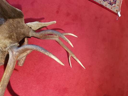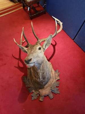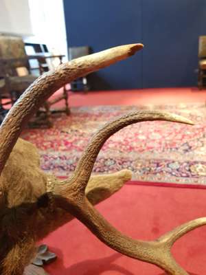 with eight points, mounted on a Black Forest carved shield with oak leaves