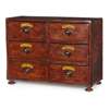 of cubic form with an arrangement of six drawers with applied paper Latin labels, on bun feet