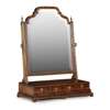 the shaped bevelled mirror plate above a base with three short drawers raised on bracket feet