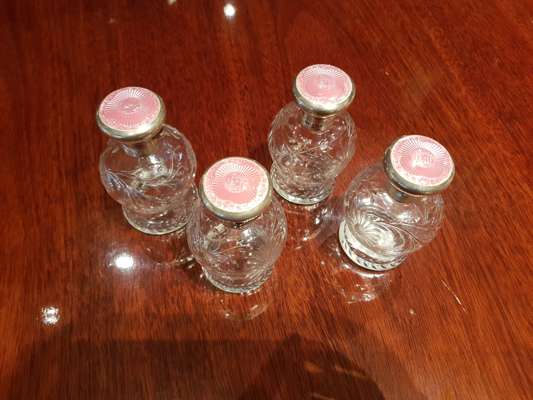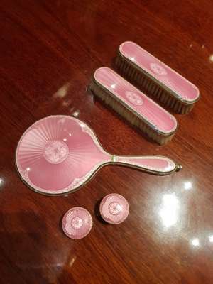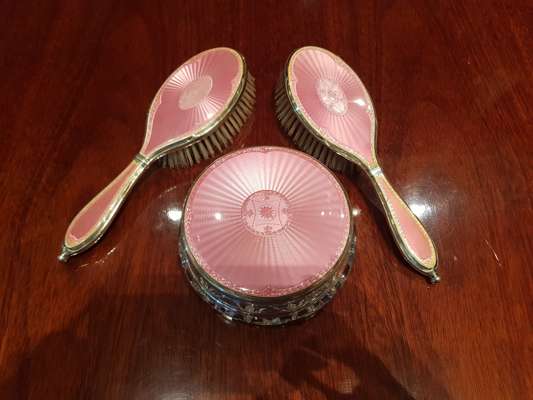 ENGLISH SILVER AND PINK ENAMELLED DRESSING SET