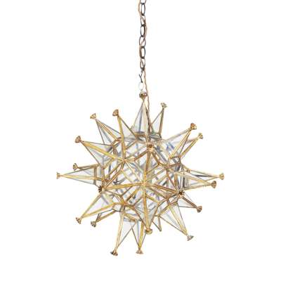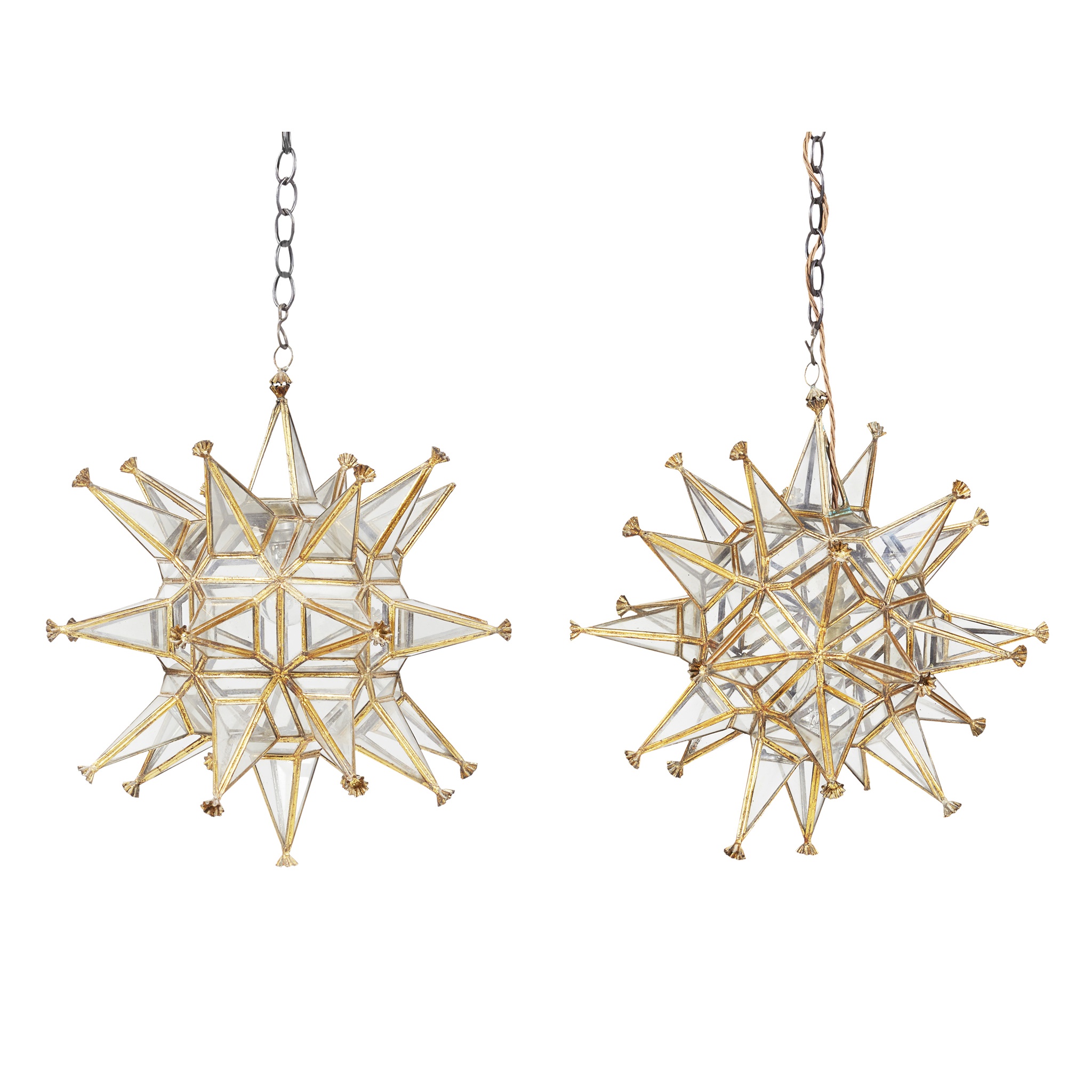 PAIR OF BRASS AND GLASS STARBURST HALL LIGHTS