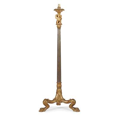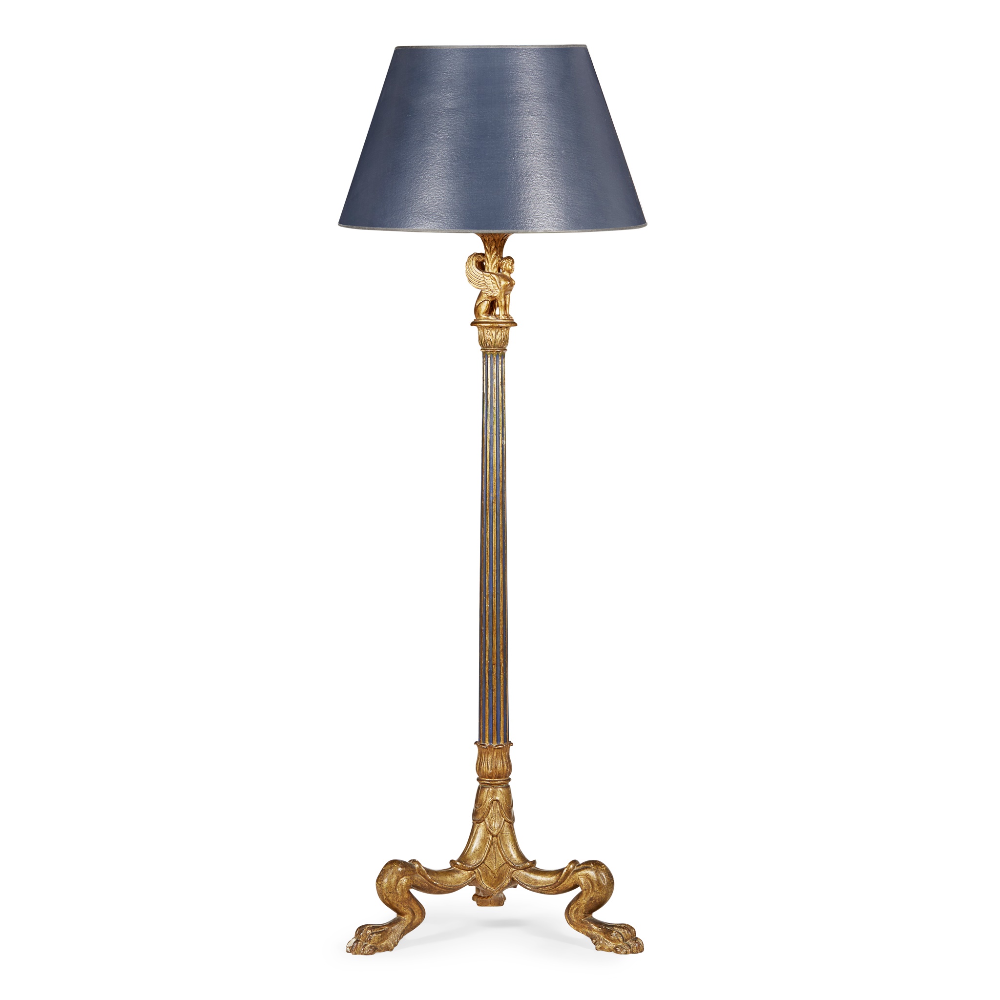 ITALIAN CARVED GILTWOOD AND PAINTED NEOCLASSICAL STANDARD LAMP