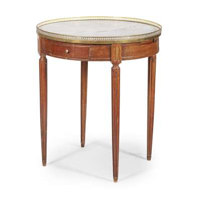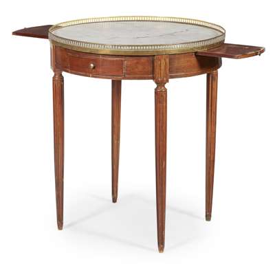 LOUIS XVI STYLE MAHOGANY MARBLE TOPPED BOUILLOTTE TABLE