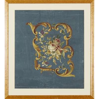 watercolour and gouache on paper, all of scrolling floral design, some with artist's notes and numbers, in later maple frames