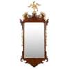 the rectangular mirror plate in a gilt moulded slip and mahogany frame with pierced scrolling cresting with auricular and foliate scrolls and surmounted by a ho-ho bird, flanked by trailing leaves