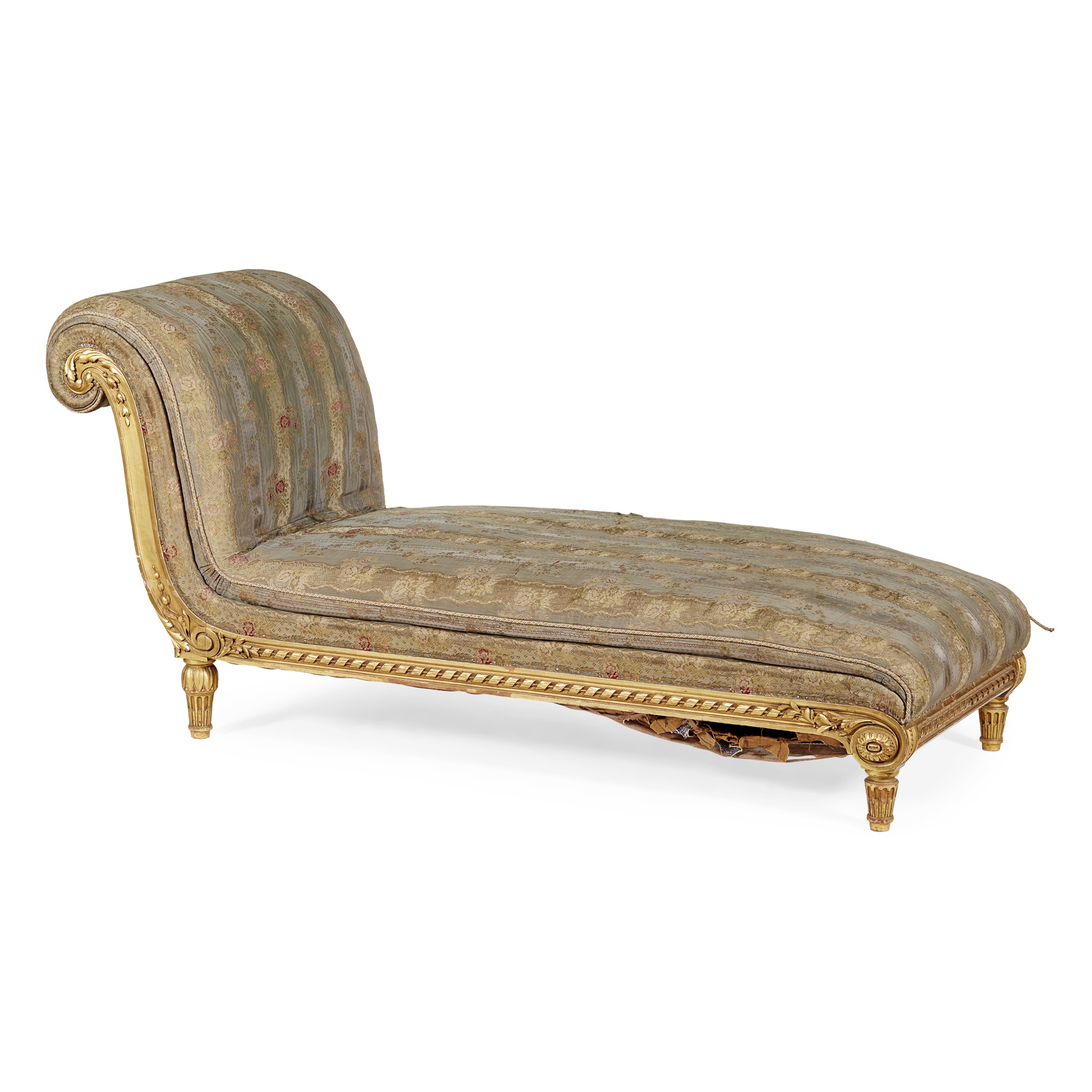 LOUIS XVI STYLE GILTWOOD CHAISE LONGUE