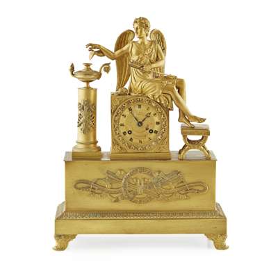 FRENCH EMPIRE GILT BRONZE MANTEL CLOCK