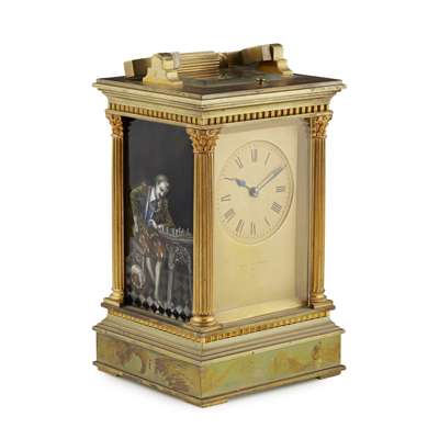 FRENCH LIMOGES ENAMEL AND GILT BRASS REPEATER CARRIAGE CLOCK