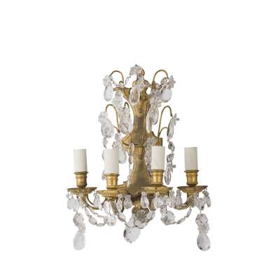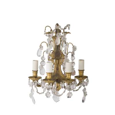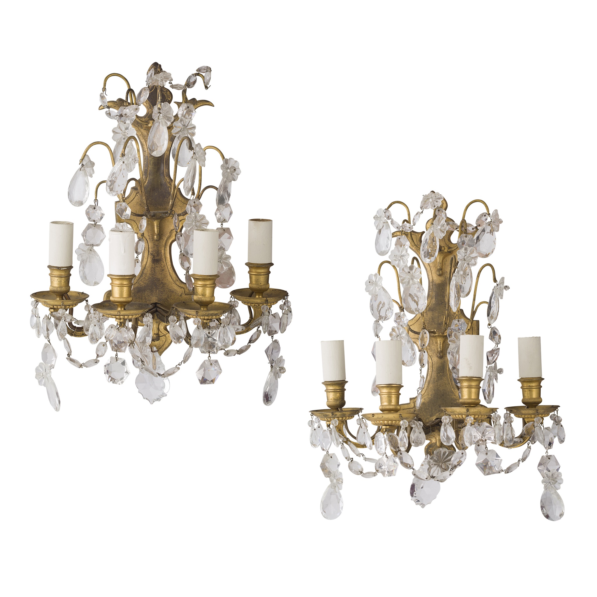 PAIR OF FRENCH GILT BRONZE AND CUT-GLASS WALL SCONCES