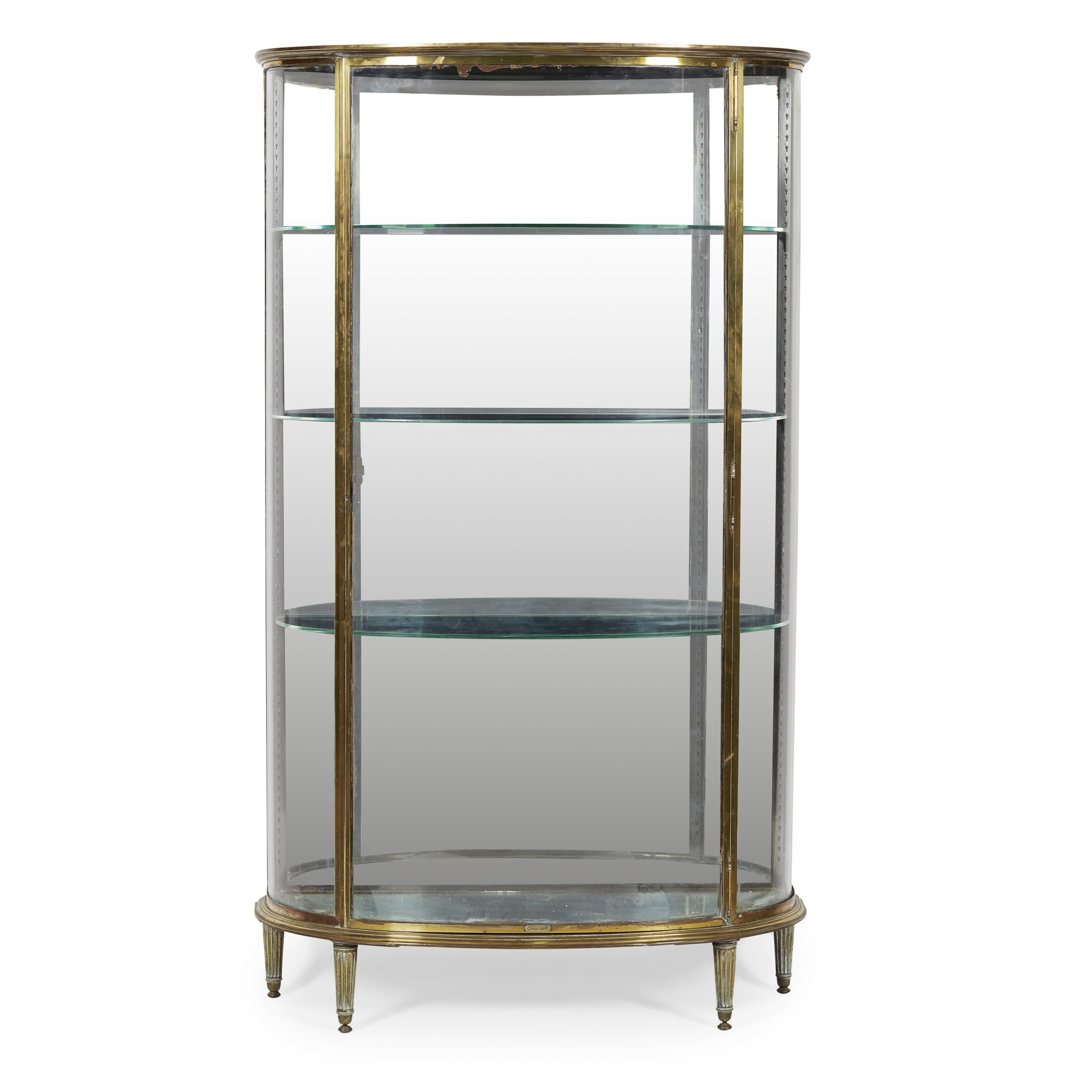 FRENCH LACQUERED BRASS DEMILUNE VITRINE, BY SIEGEL, PARIS