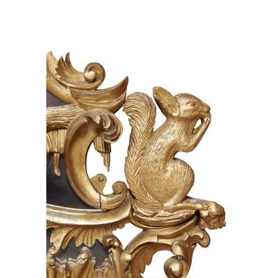 Note: This mirror relates directly to a design for a 'girondole' in Chippendale's Director, Plate CLXXVIII. Conceived in the high rococo style prevalent from the 1750s through the 1770s, and again in during the Chippendale Revival of the 19th century, the mirror with its asymmetrical plates is enclosed in a undulating frame whimsically embellished with animals and flowers. Squirrels seem to have been a popular subject as other noted 18th century makers incorporated them in mirror frames, including Thomas Johnson.