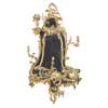 the asymmetrical mirror plate in a rococo frame with three scrolling candle branches, the frame carved with rocaille, foliate scrolls, a squirrel and flower-filled urn, surmounted by a large ho-ho bird