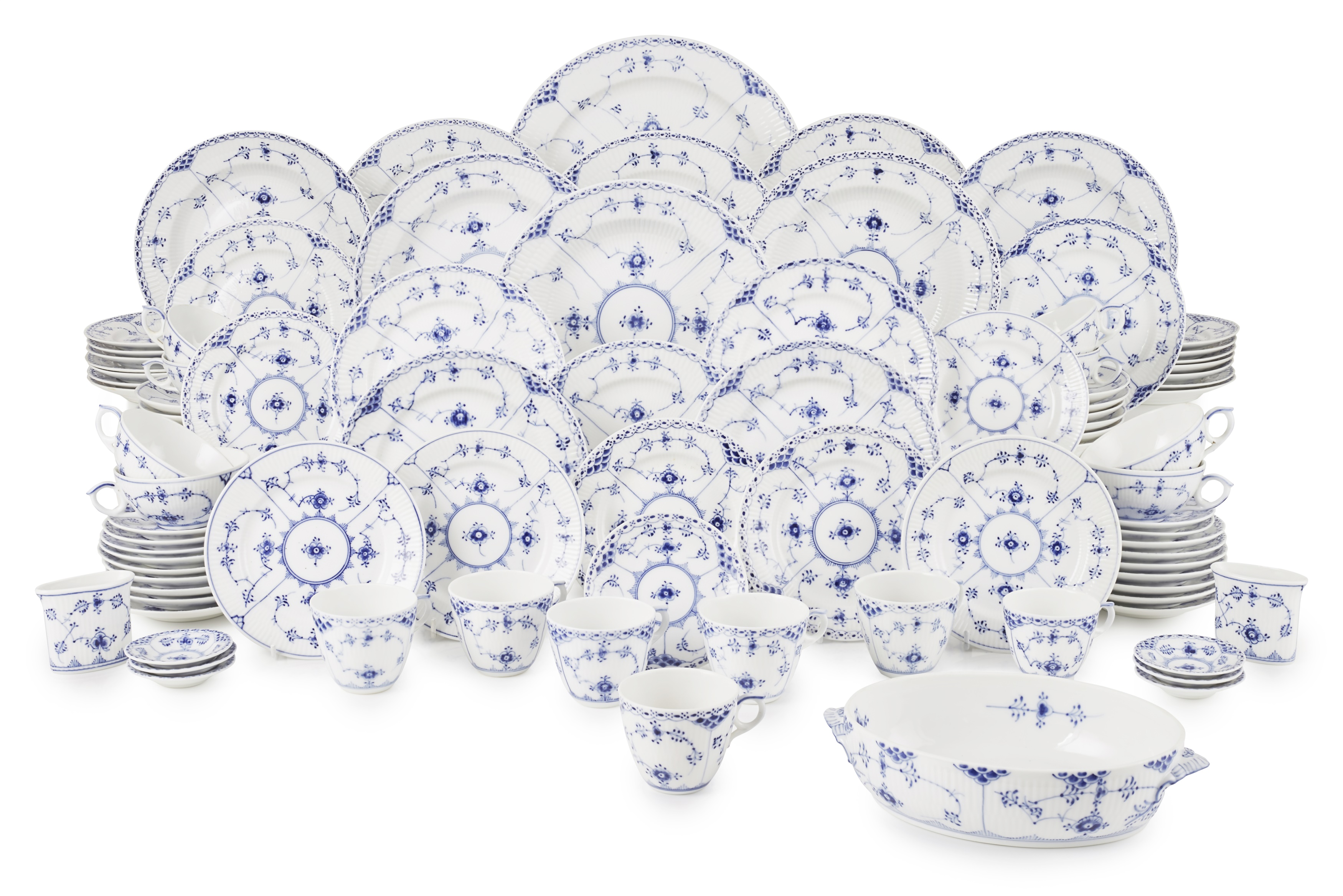 ASSEMBLED ROYAL COPENHAGEN BLUE AND WHITE PORCELAIN PART DINNER SERVICE