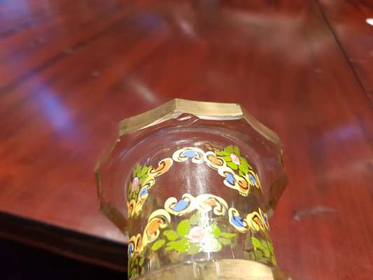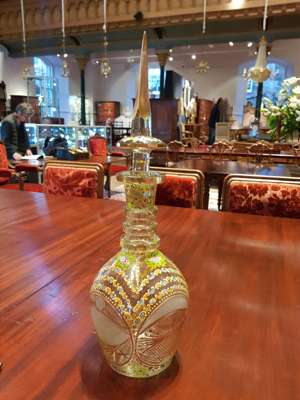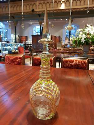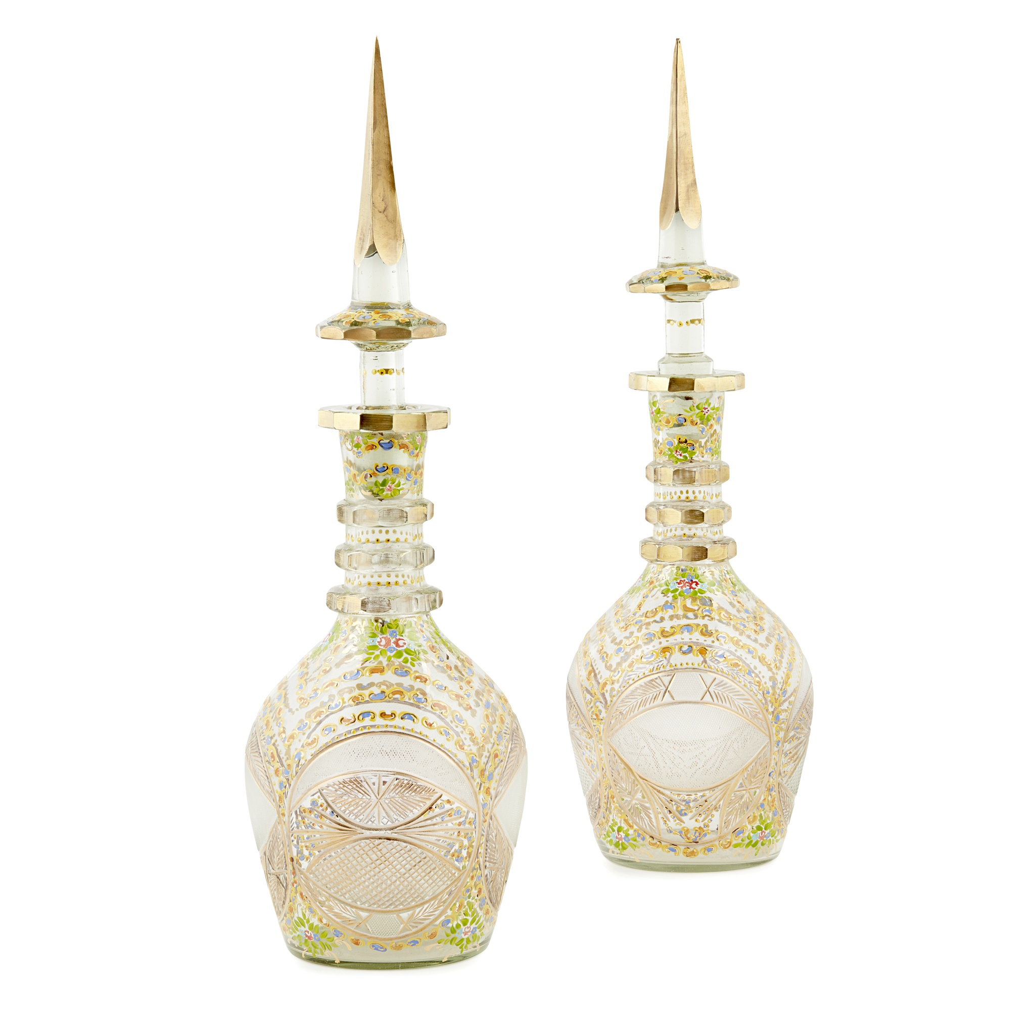 PAIR OF LARGE ENAMELLED GLASS DECANTERS AND STOPPERS, FOR THE ISLAMIC MARKET